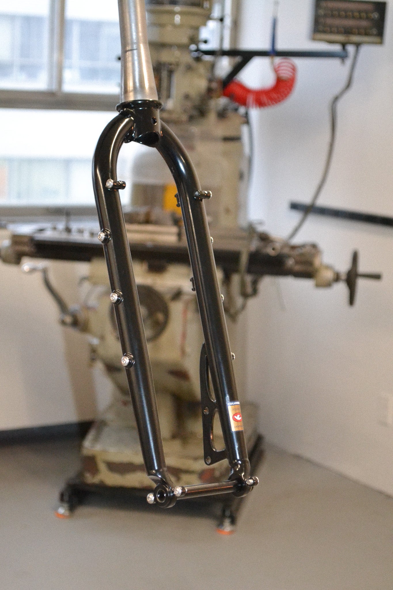 Nos fourches sur mesure sont conçues et fabriquées en fonction de votre utilisation et des requis techniques de votre vélo. Nous recommandons une fourche en acier pour son confort et sa durabilité.