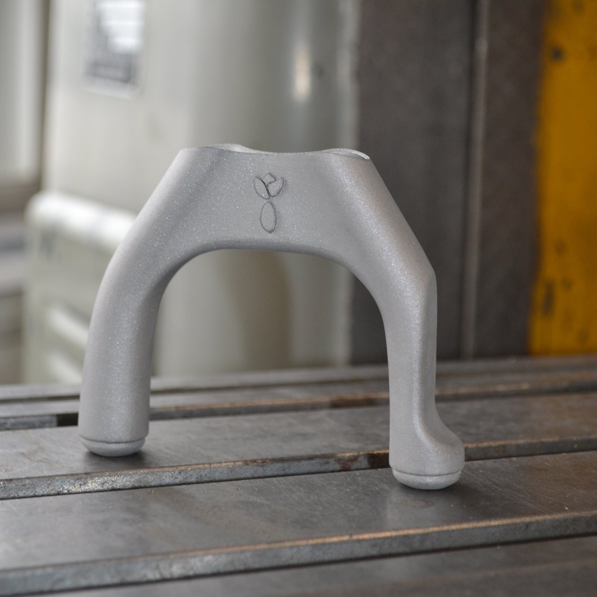 Les bases (chainstays) sont conçues autour d'un yoke en acier inoxydable, fabriqué par impression 3D. Cette pièce unique permet d'offrir un dégagement impressionnant: